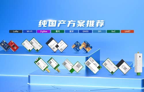 产品涵盖LoRa模块、WiFi模块、蓝牙模块、ZigBee模块、nbiot模组、4G DTU、can模组、串口服务器、遥控开关、数传电台、无线网关、远程IO模块等物联网无线通信设备。