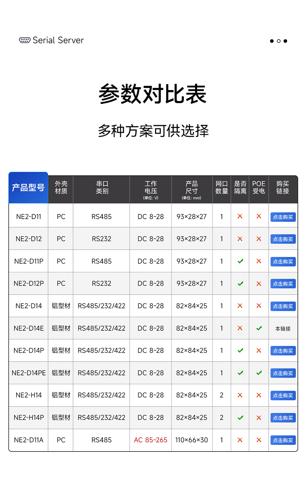 工作模式 | TCP Server(默认)、TCP Client、UDP Server、UDP Client、HTTP Client、MQTT Client |