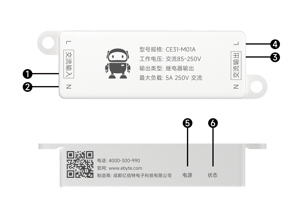 | CE31-M01AX | 1路交流输出 | 不限距离 | AC 85~250V | 62.4*23.2*15.2mm | 微信小程序控制 | 超小体积、隐藏安装、内置天线、4G传输 | ||